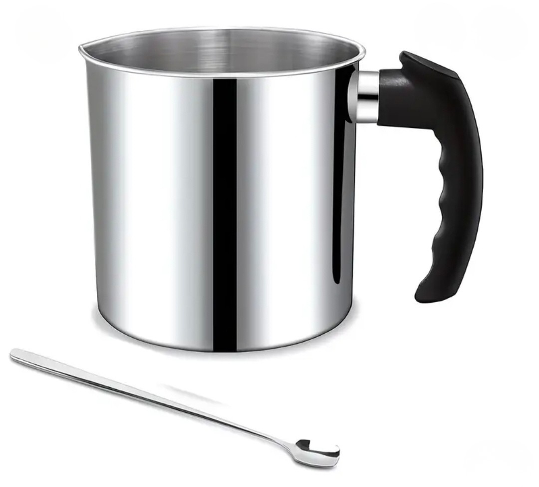 1300ml Silvery Jug for Candle Making, a spoon, and a design with a Heat-Resistant handle and a drip-free spout.